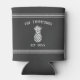 These cool personalized can coolers feature your family name on a charcoal grey background, with your year established and a pineapple illustration. Rope stripe detailing at the top and bottom completes the design for a rustic farmhouse style look.