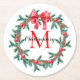 Rustic Pinecone | Bauble Christmas Wreath Monogram Round Paper Coaster