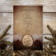 Customize the charming Rustic Pines Woods Wedding Menu with the details of the meal that you will serve at your woodsy wedding rehearsal dinner or bridal shower luncheon by adding the salad or first course, entree or second course and dessert or third course. Personalize it with the names of the bride and groom, venue location and event date. This woods or forest wedding menu features a nature style photograph of a wood slice with the word LOVE on it, two brown pines cones, green pine tree branch and white bridal veil with a burlap background. Perfect inspo for the couple who has planned a casual yet classy natural outdoor woodland wedding theme.