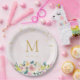 Rustic Pink Floral Initial Bridal Shower Paper Plate