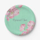 Rustic Pink Floral on Mint Green Burlap Paper Plate