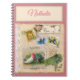 Personalized spiral notebook with pretty vintage floral patterns on a rustic, textured look background.