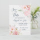 A pretty save the date card for your wedding with rustic country wood pattern and delicate pastel pink roses and peonies with rose gold touches.