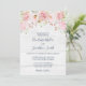 A vintage floral invitation for your spring wedding with elegant blush pink watercolor flowers with pastel greenery, a rustic wood pattern and modern handwritten style text and rose gold details.
