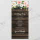 Elegant watercolor flowers and greenery decorate these rustic wedding programs. Design features light blush pink and white flowers with strings lights and a dark barn wood background with a modern script font.