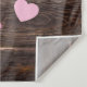 Country chic girl baby shower backdrop tapestry featuring a rustic wooden background, a cute baby elephant carrying a pink balloon, surrounded by pretty hearts, and an elegant baby shower template that is easy to personalize.