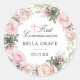 Rustic Pink Rose Floral First Communion Classic Round Sticker