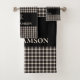 Rustic Plaid Monogram Deer | Black Cream White Bath Towel Set