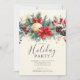 Modern rustic elegance holiday party featuring a beautiful poinsettia and holly berry garland set on a cream background.