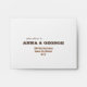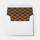 This envelope, with a large cream and white star burst on the outside, has a customizable address printed on the front. This envelope is intended to be used as a return envelope for RSVPs - you can clear the front address if you'd like to use it for another purpose. The inside lining is a dark brown and cream scallop pattern.
