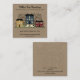 Rustic Primitive Country Kraft Square Business Card - This rustic, country design features three country saltbox houses surrounded by willow trees and two wooly sheep. Perfect for any country or craft business.