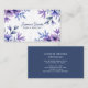 This charming business card design combines watercolor purple and blue floral accents with a rustic white wood background. The reverse features a deep navy tone for a professional touch. Ideal for hairstylists, makeup artists, and beauty professionals seeking a unique blend of elegance and rustic style for their branding.