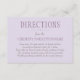 Rustic chic wedding directions cards feature lavender, lilac purple, and pewter grey custom text.