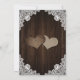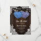Romantic rustic purple and blue floral wedding save the date cards featuring hydrangea flowers against a barn wood background adorned with white floral lace and string lights. Matching items available.