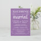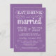 Eat, Drink, and be Married -- Vintage style rustic country wedding invitations -- Swirly, curly scrolls and old-fashion typography on cheerful radiant orchid lilac purple burlap background. Add your names and wedding info in this easy to use template. Elegant but fun and whimsical, chalkboard style script writing can be modified for your formal or semi-formal retro wedding theme. Casual modern style is perfect for trendy contemporary weddings with a fun touch of sophisticated charm for the traditional bride and groom. Please contact us for help with customization if you need additional room for your wedding details. Other sizes and chalkboard styles available.