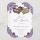 Complement your rustic purple wedding party with this beautiful burlap and lace wedding save the date card featuring two burlap hearts, string lights and delicate floral lace. Matching items available.