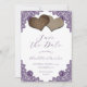 Rustic Purple Floral Lace Burlap Hearts Wedding Save The Date