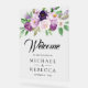 Elegant wedding welcome sign featuring beautiful watercolor flowers and modern typography.