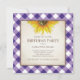 This country Birthday BBQ invitation comes adorned with a purple picnic chequered tablecloth design with a bold yellow sunflower in a unique square format. Your barbecue details are set in sans typography in a complimentary brown. The vintage paper design is carried over to the back of your invite. Perfect for summer bbq birthday parties for women or men. To see more invitations visit VG Invites at www.zazzle.com/vginvites