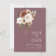 Rustic Purple with Peach Flowers Wedding Save the Date Card. Stylishly invite your guests to your wedding day with this elegantly designed wedding save-the-date card invitation featuring a beautiful blend of peach and olive green flowers on a lovely purple background. This wedding save-the-date card has a beautiful floral and botanical design, with rustic and boho vibes, perfect for your floral or boho-chic style wedding.