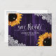 Rustic Purple Sunflower Lace Wedding Save The Date Postcard