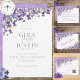 Rustic Purple Violets Gold Sparkle Dinner Wedding All In One Invitation