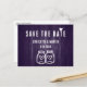 Minimalist rustic wedding save the date postcard with modern calligraphy ideal for a purple rustic country/backyard/barn wedding party.
