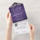 Rustic Purple Wood String Lights QR Code Wedding All In One Invitation