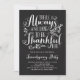There is always something to be thankful for. Invite guests to your event with this customizable Friendsgiving invitation. It features a Thanksgiving quote in rustic calligraphy on a faux chalkboard background. Personalize by adding your details. Matching items are available.