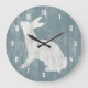 A cute rabbit on a pastel blue wood background gives this bunny rabbit a sweet country and rustic flair.