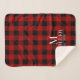 Rustic Red and Black Buffalo Check Monogram Name Sherpa Blanket