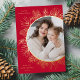 Elegant foil holiday card featuring your photo encircled by gold foil pinecones, pine boughs, and winter foliage with a red background. The botanical holiday photo card features your custom holiday greeting, family name, and the year in gold foil lettering. Add your custom message to the back of the card or leave blank.