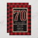 Rustic Red Black Buffalo Plaid 70th 70 Birthday Invitations.