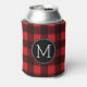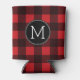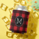 Rustic Red Black Buffalo Plaid Pattern Monogram Can Cooler