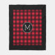 Rustic Red Black Buffalo Plaid Pattern Monogram Fleece Blanket
