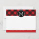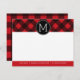 Rustic Red Black Buffalo Plaid Pattern Monogram Note Card