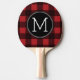 Rustic Red & Black Buffalo Plaid Pattern Monogram Ping Pong Paddle