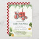 Amaze your guests with this elegant farm theme baby shower invite featuring a beautiful red tractor and lush green trees. Simply add your event details on this easy-to-use template to make it a one-of-a-kind invitation.