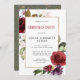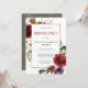 A elegant thin rustic gold frame surrounds your Christmas Party details. An open gold floral pattern over dark green decorates the back of the Christmas Party invitation for an elegant and luxe vibe. Beautiful red roses wit purple and pink flowers decorate the frame. This invitation is part of the Autumn Red collection. It contains the invitation and party supply templates you can use to easily and quickly create a unique bridal shower.