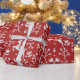 Festive rustic red Nordic holiday pattern wrapping paper. Rustic design features Nordic style reindeer, branches and berries on trendy red.