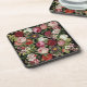 Rustic Red Pink Floral Greenery Black beverage coaster. Unique, beautiful, modern design. Matching items available.