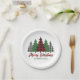 Rustic Red Plaid Merry Christmas Trees Party Paper Plate