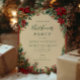 A festive Christmas party design framed with classic red poinsettias, pine branches, and winter greenery. The rustic vintage style captures the warmth and coziness of the holiday season, perfect for a traditional Christmas celebration.