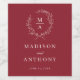 This tasteful and classic custom wine label design conveys an elegant look for your wedding or engagement celebration. A simple open laurel wreath of sketched leaves surrounds the monogram initial of the bride and groom. The elegant yet simple text template is ready to personalize with the bride and groom's names and wedding date. Shown here in rustic red, this design is available in a variety of popular color choices.