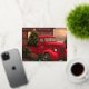 The Rustic Red Truck and Trees Christmas Card Christmas Card features a digitally painted red truck with holiday trees. Gold foil text against this digital painting makes this a stunning holiday card for the season.