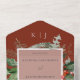 ALSO AVAILABLE IN STYLES WITHOUT DINNER OPTIONS OR WITH A QR CODE. Celebrate love in the enchanting embrace of winter with our exquisite wedding invitation. Embodying the serene beauty of the season, this invitation features a captivating soft rustic red hue that exudes elegance and warmth. The centerpiece of this ethereal invitation is a transparent white text area, lovingly framed by intricately intertwined pine, holly, and red berries, reminiscent of a magical winter wonderland. Delicate winter greenery encircles the frame, accentuating the invitation's enchanting appeal. The couple's initials radiate the love that binds them together, symbolizing their union as they embark on a new chapter in life. Created by Simply Farmhouse Press.