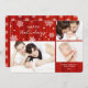 Bright and colorful card perfect to celebrate Christmas and all the holidays during the Winter season. It features three family pictures. The background has a rustic red wood texture for a vintage feel. The snowflakes add a playful look.