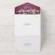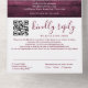 All in one wedding invitation with pretty string lights, signature style names and chic typography on a rustic burgundy red wood background. The invitation includes a perforated RSVP card with your wedding website QR code and Details. Designed by Thisisnotme©
