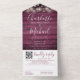 Rustic Red Wood String Lights QR Code Wedding All In One Invitation