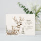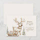 Celebrate a winter baby shower with this adorable woodland invitation, featuring a soft beige reindeer pulling a wooden sleigh full of presents through a snowy forest. Neutral frosted firs and minimalist snowfall details create a serene, gender-neutral scene perfect for cozy holiday gatherings. A charming blend of rustic warmth and Scandinavian simplicity.